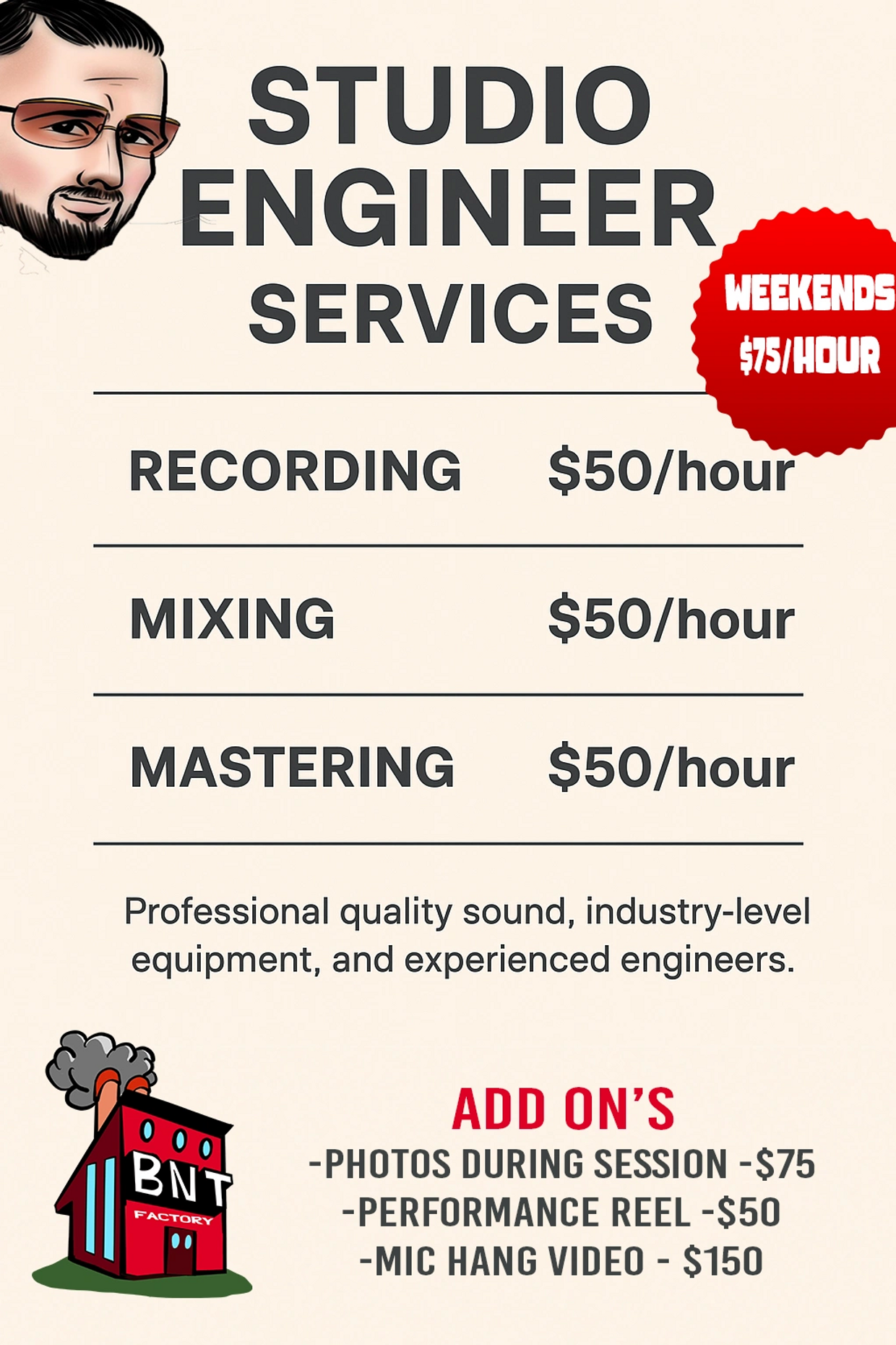 $50/hour WEEKDAYS/ $75/hour WEEKENDS